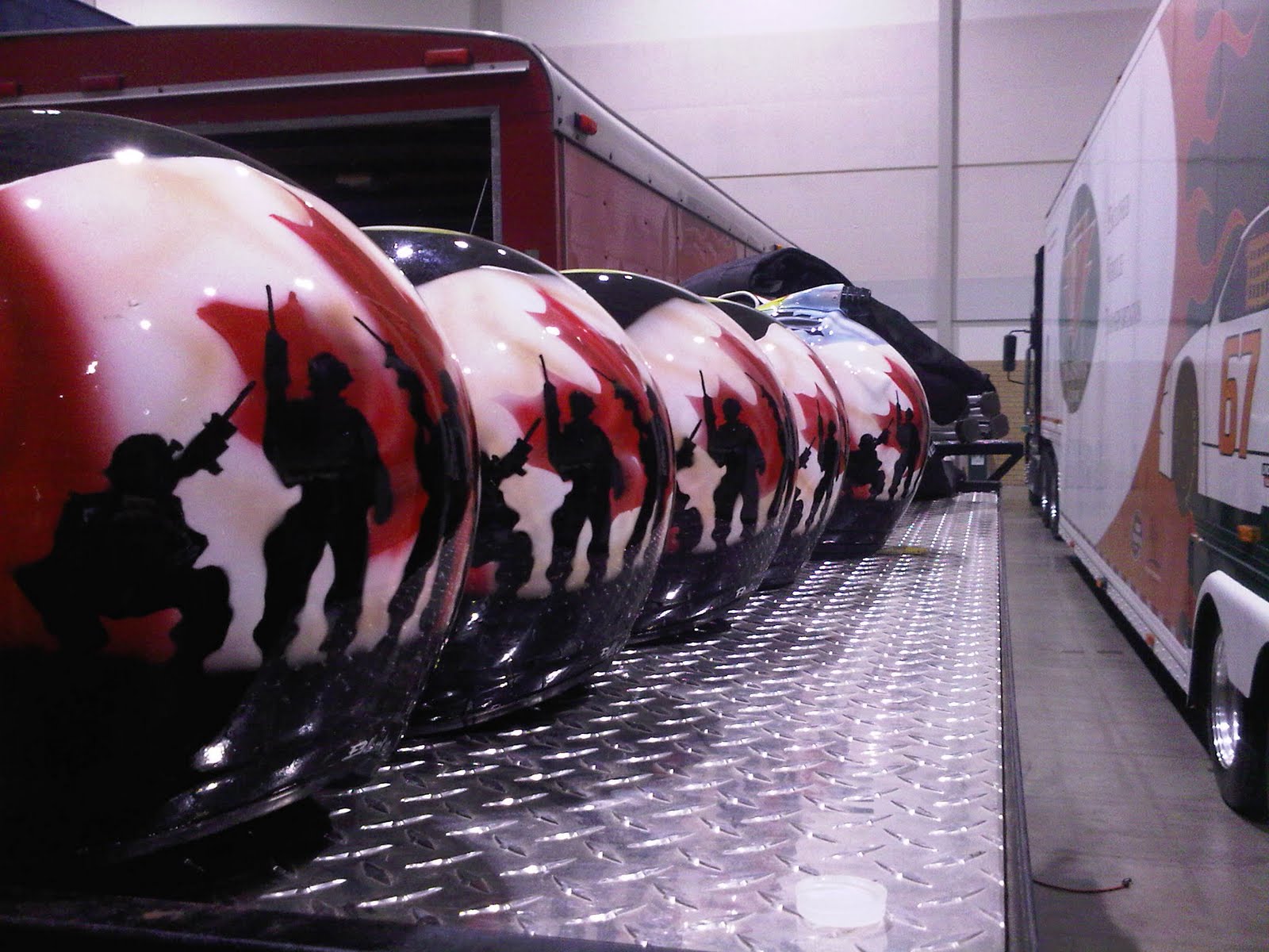 Custom painted crew helmets for Canadian Heroes race team July 21, 2010 by admin I got Fred Bulbeck to do up the crew helmets with a custom paint job. Yes they really do look that good!! Sent from my BlackBerry® wireless device