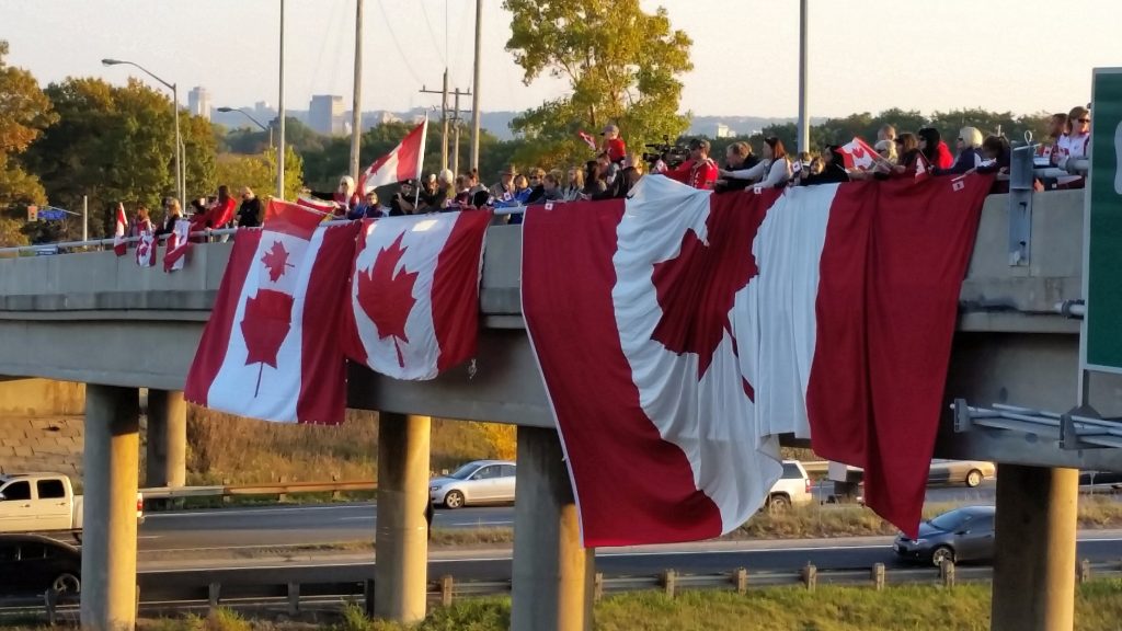 Over the years we have received numerous messaging about the repatriations of our fallen heroes and how people can be involved in them. Well you have most likely heard how Canadians have come out and lined the bridges and waved their flags and presented their signs of support for the family as they pass below. Two years ago we organized the longest repatriation in recent history, with over 100 vehicles and thousands of citizens on the bridges when John Gallagher came home.